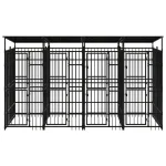 This dog kennel provides ample exercise space. The walls of steel bars help prevent mischief and unexpected accidents while enabling ventilation. Thanks to the sturdy powder-coated steel construction, this dog kennel is durable and built to last. The roof provides protection from sun, rain, snow, as well as other weather conditions. The hinged door with a lockable latch system ensures extra security and safety for your dogs.